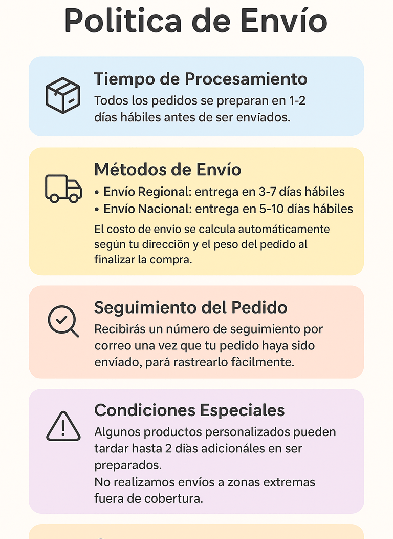 Conoce nuestras condiciones y tiempos de envío para una experiencia de compra satisfactoria.